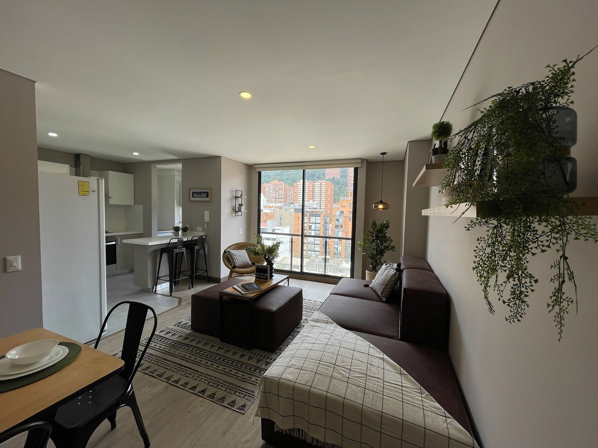 Get this great apartment for the first time as you deserve it! It is a very cozy space so that our guests feel comfortable and at home. Likewise, the building is completely new and you will be able to have access to the facilities provided by the building including: a meeting room, a children's park, a community room and a large terrace with a great view of the city. The contemporary architecture of the apartment along with its warmth is designed so that you can have one of the most unforgettable stays in your life!