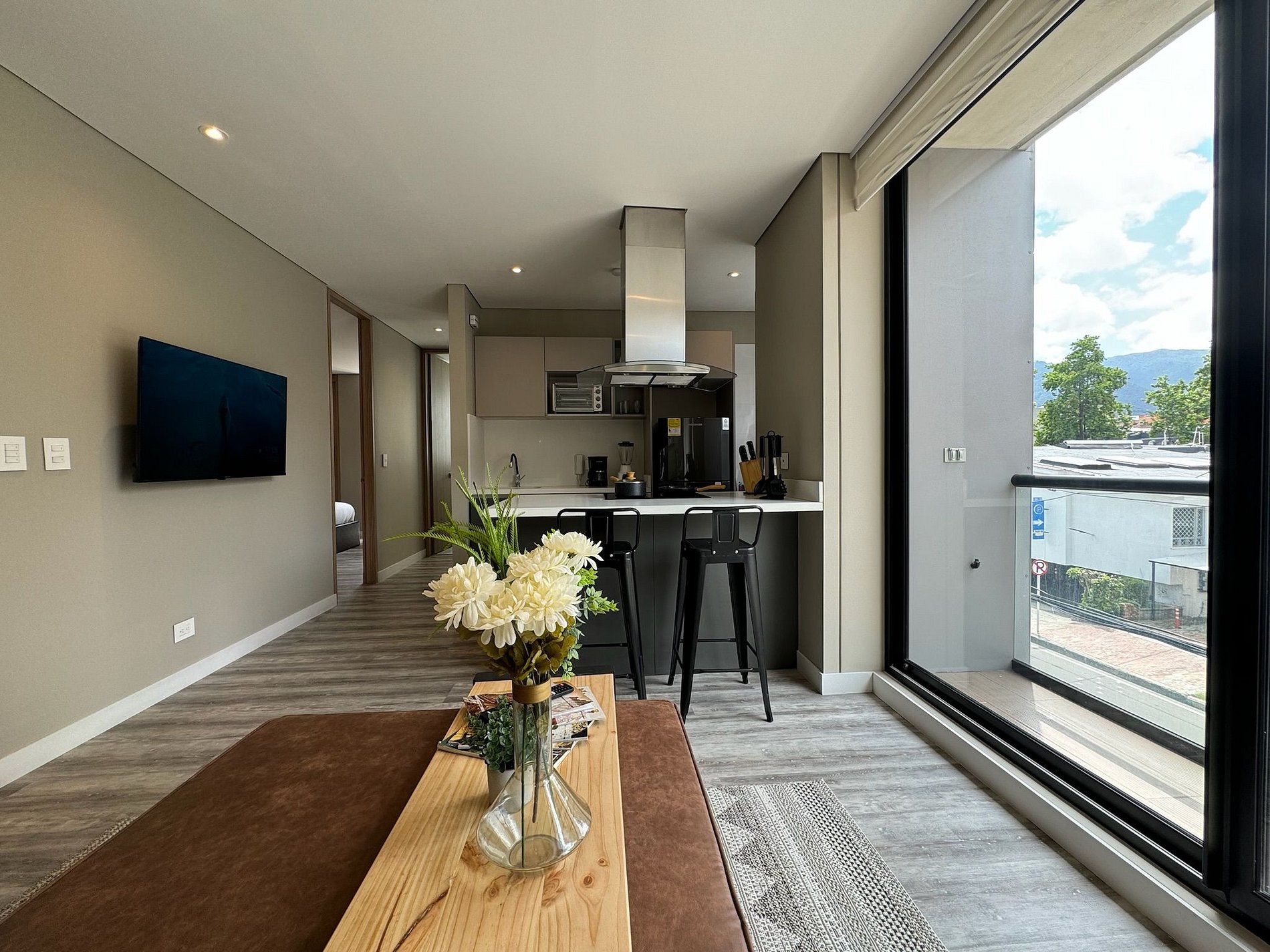 Nuestro espacio ofrece lo máximo en comodidad y conveniencia. Desde la cocina totalmente equipada, productos de aseo y baño de alta calidad, terraza privada, hasta la TV e internet de alta velocidad. Todo está diseñado para tu comodidad. Además, disfruta de una cafetería completa y la conveniencia de una lavadora en el apartamento. Con nuestro servicio, nos encargaremos de que se sientan en casa y no tengan ningún problema. El edificio ofrece aún más: un espacio de coworking, parqueadero gratis, una terraza espectacular con BBQ, y un gimnasio para mantenerte en forma. ¡Tu estadía perfecta te espera aquí!